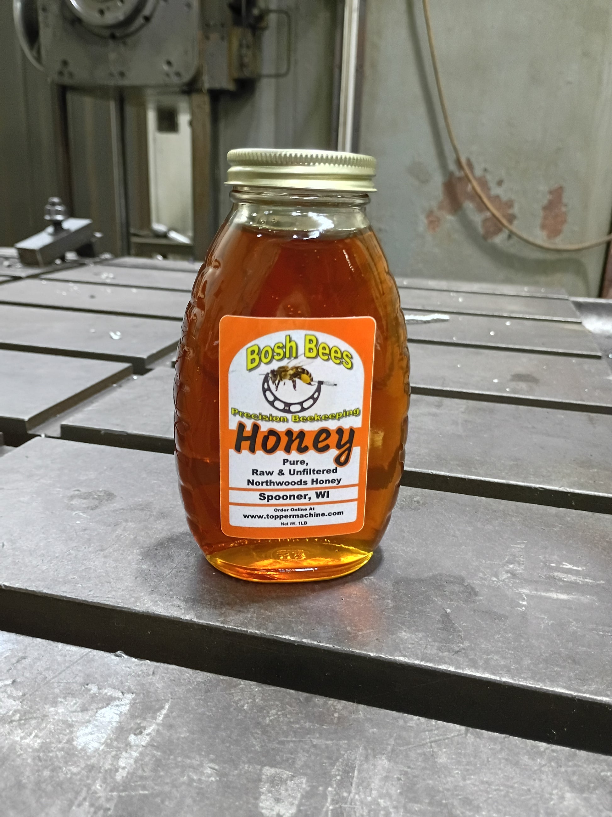 Dark Northwoods Wisconsin Honey from the apiary of Bobbi & Josh Topper, or as we call it, Bosh Bees. From our hives at our home and machine shop near Spooner Wisconsin.